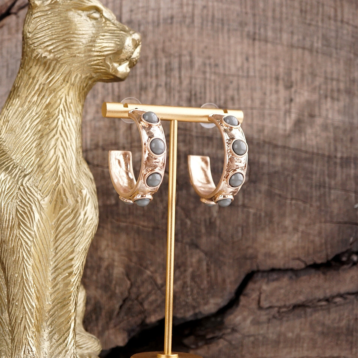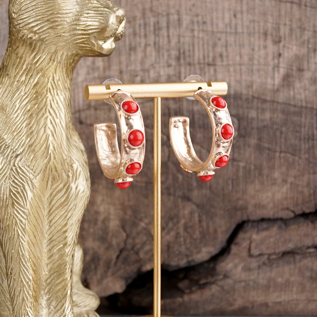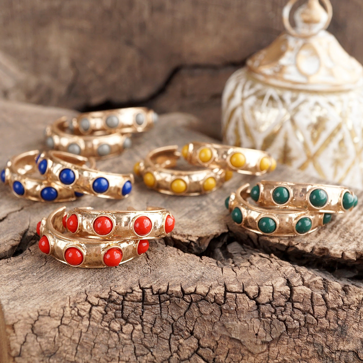 A bold take on a classic hoop. These Jeweled Bubble Earrings feature an organic gold-tone finish with vibrant acrylic cabochons, adding texture, color, and charm to any look. Designed to pair perfectly with our matching Bubble Bangles or stand strong on their own.