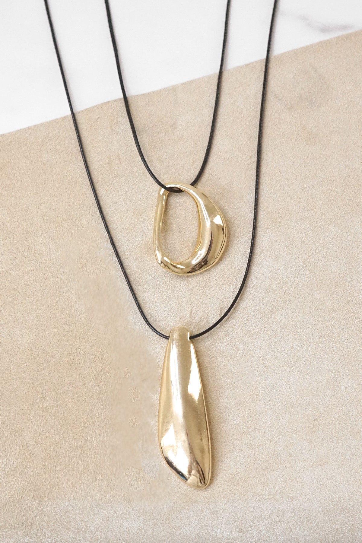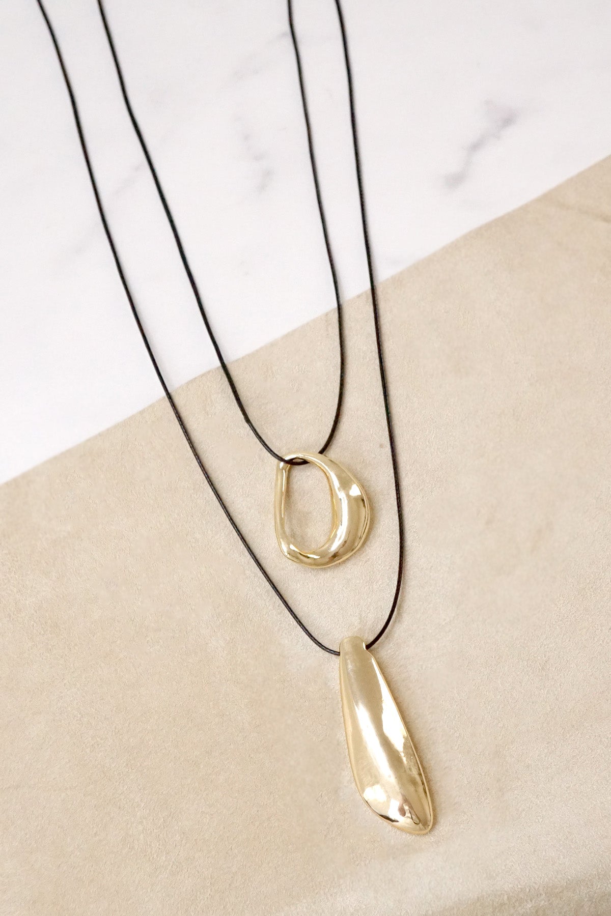 Double strand minimalist abstract necklace Gold and black Multi Layer Bubble