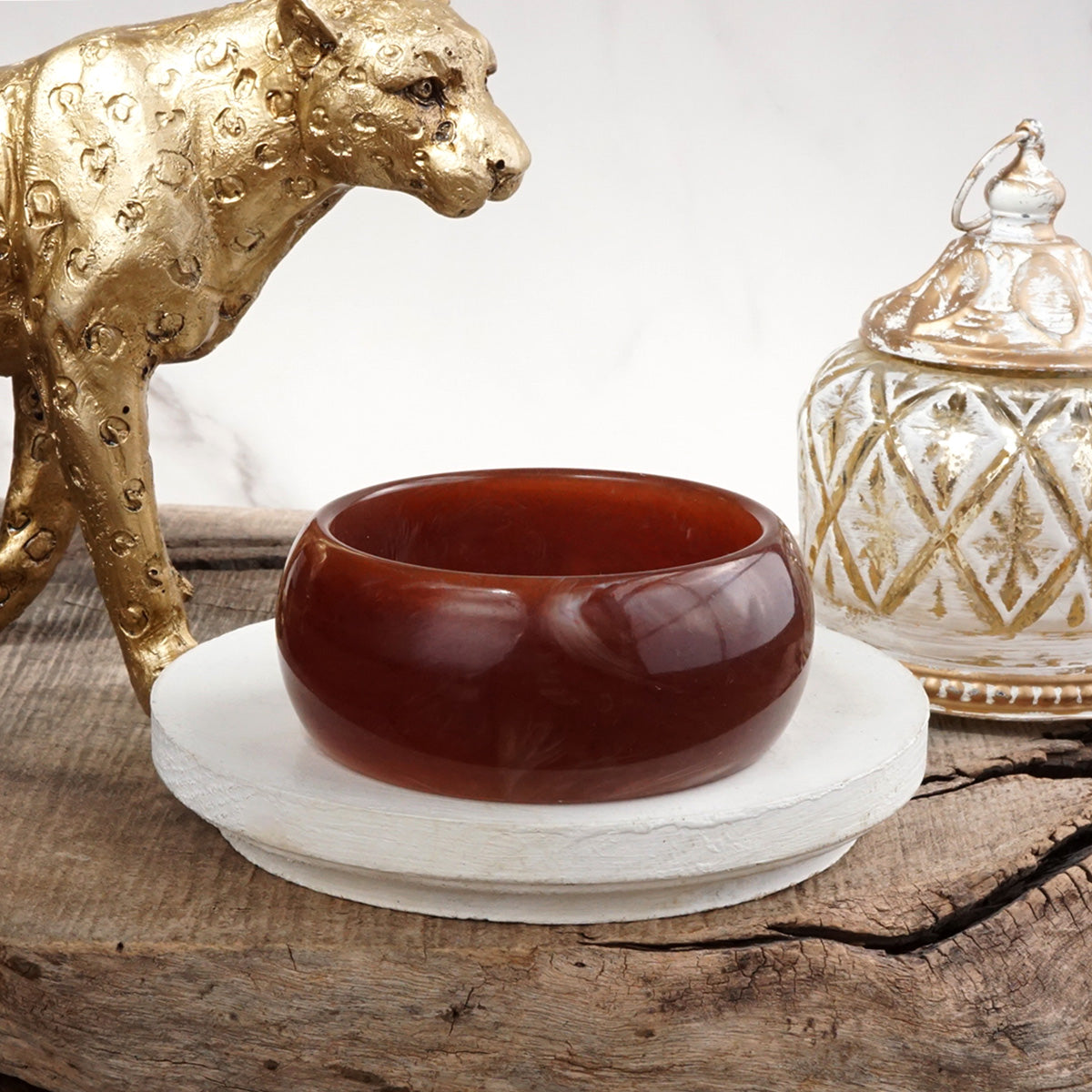 Modern, sculptural, and full of charm — these wide acrylic bangles make a bold yet graceful statement. Designed with softly rounded tops and a smooth, high-gloss finish, they bring a touch of vintage-inspired polish to any wrist. Available in rich Brown and creamy Ivory, perfect for wearing solo or layering with your favorite stacks.